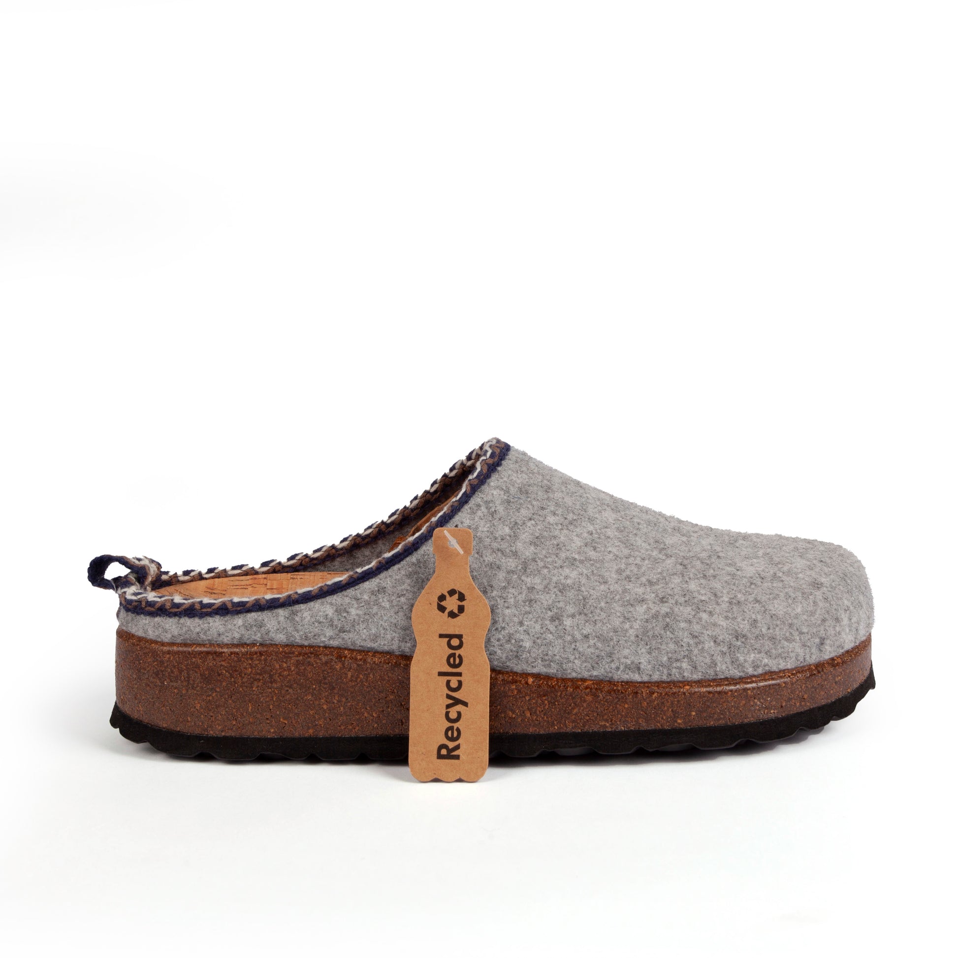 Realizadas en fieltro reciclado, un tejido que ayuda a mantener los pies cálidos con suavidad y comodidad. Este material reciclado contribuye a la sostenibilidad del planeta con un importante ahorro de agua, emisiones de CO2 y energía.