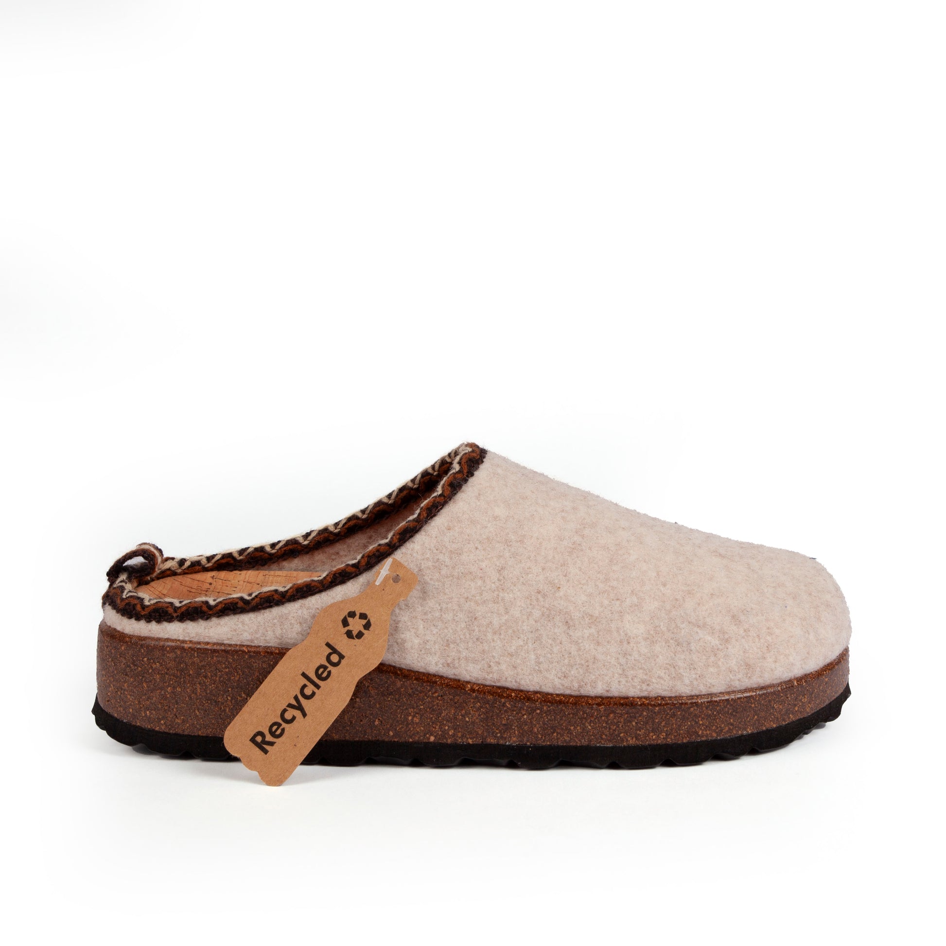 Realizadas en fieltro reciclado, un tejido que ayuda a mantener los pies cálidos con suavidad y comodidad. Este material reciclado contribuye a la sostenibilidad del planeta con un importante ahorro de agua, emisiones de CO2 y energía.